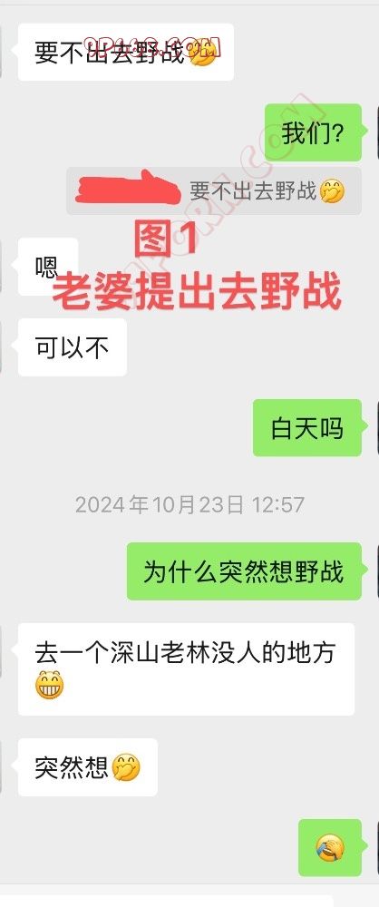 小湖北加上老婆微信后,我正愁着怎么让他们实战玩起来,恰逢来了一个千载难逢的时机。那段时间,老婆突然性欲暴涨,某天,老婆突然发微信给我问我去不去野战?我挺震惊,因为我们从来没这么玩过,更没想到居然是老婆主动提出来,这和她平时的性格完全相反。但是瞬间让我意识到这是让小湖北和老婆深入交流的绝好时机,于是我答应老婆去找地方野战,而且还鼓励她邀请找个单男加入,单男的人选就是上一次顶替我小号的那个人。并没有直接让她邀请小湖北。原因是她从未见过小湖北,直接让她约陌生人,被拒绝的概率很高。让她约其他单男没有合适人选。因为这一两个月当中她只和小号中的单男打的火热,描述起来很复杂,不知道各位能不能看懂?老婆欣然同意,为了让计划天衣无缝,当老婆在微信上问我小号要不要加入野战时,小号中的我肯定借故推脱,这样就创造了让小湖北加入的条件……(见图1、2、3)